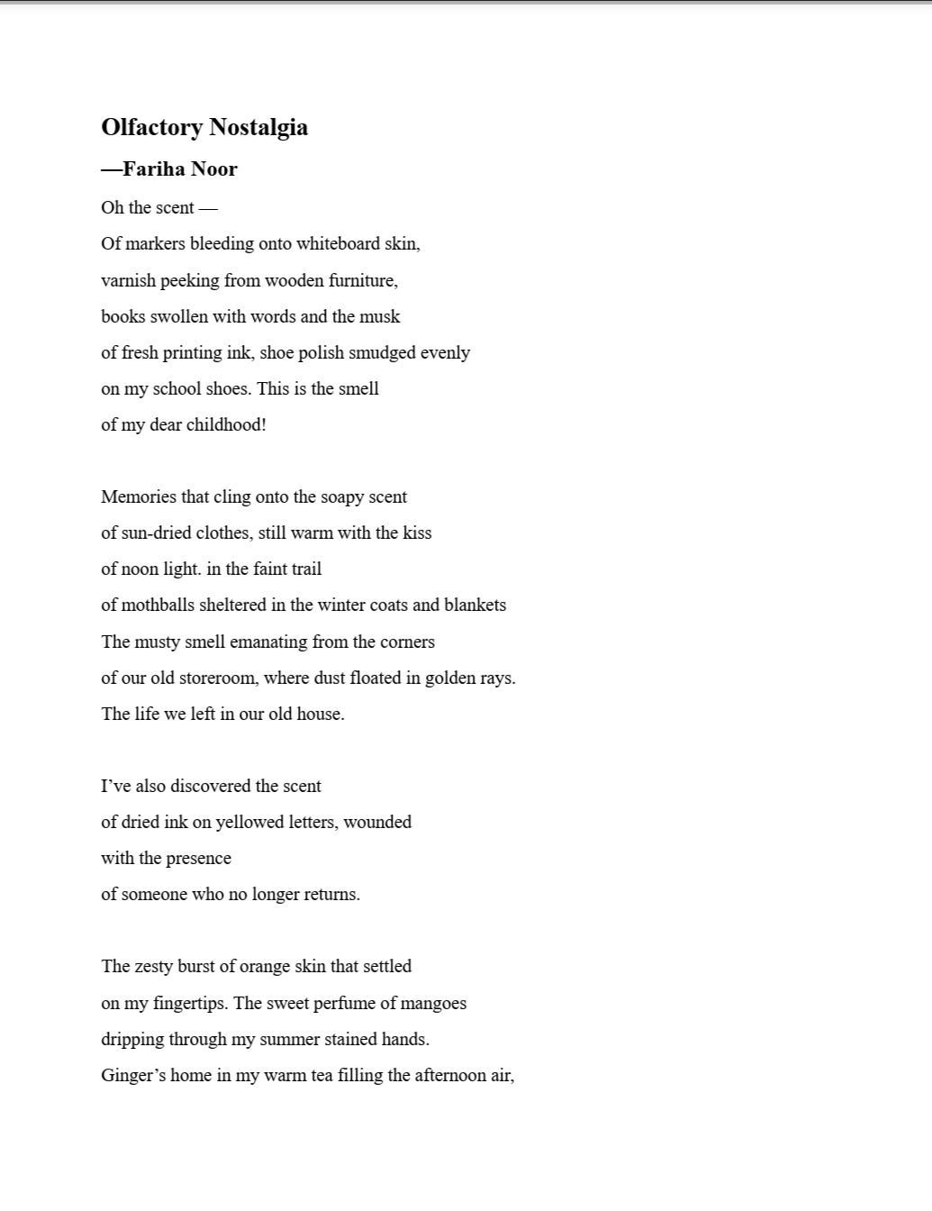 It's so amazing Subhan'Allah how the sense of smelling can be so powerful like how smelling something pure and pleasant uplifts the soul!! As always beautifully written loved it. Allahumma barik!✨🌻